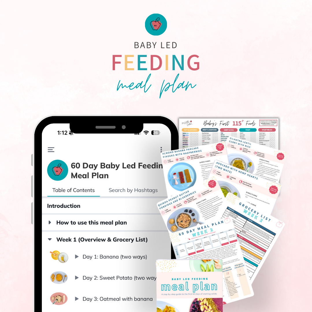 You will receive a free, realistic, expert-designed 5-day meal plan to kick start your baby’s journey into eating solids!